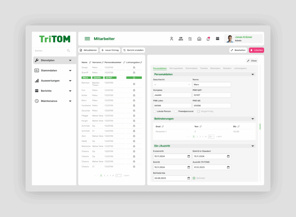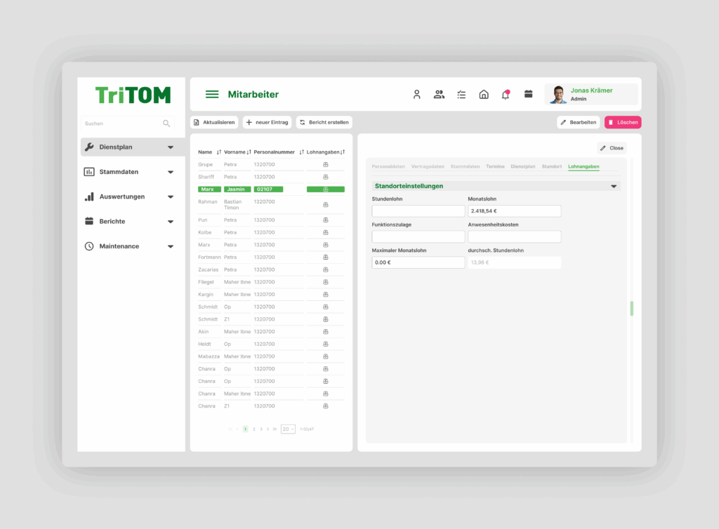 Sämtliche Mitarbeiterinformationen wie Personalakten, Kontaktdaten und Vertragsdetails sind zentralisiert. - Datensicherheit: